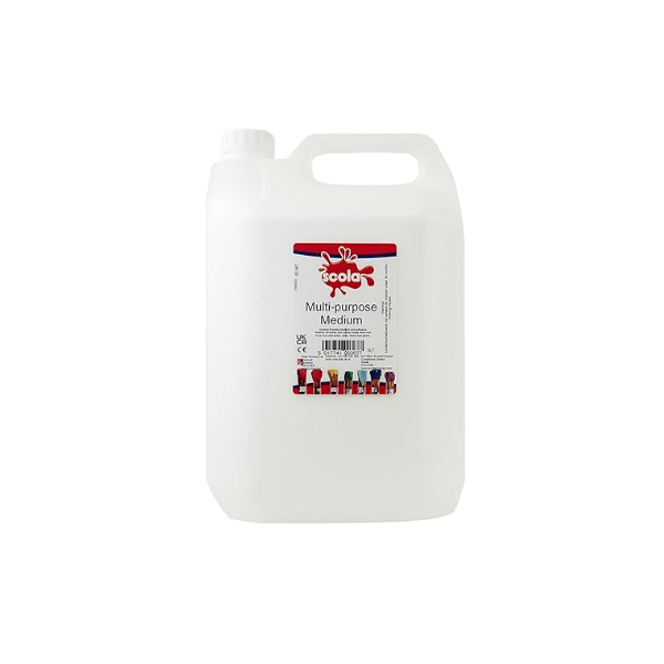 PVA 5L Craft Medium (Red label) delivers reliable performance with thoughtful details for daily use. Strong craft adhesive with excellent holding quality.Ideal for use with fabric,board and collage materials.Dries to a clear finish.Washable when wet or dry.Phthalate free. Wheat & gluten free.