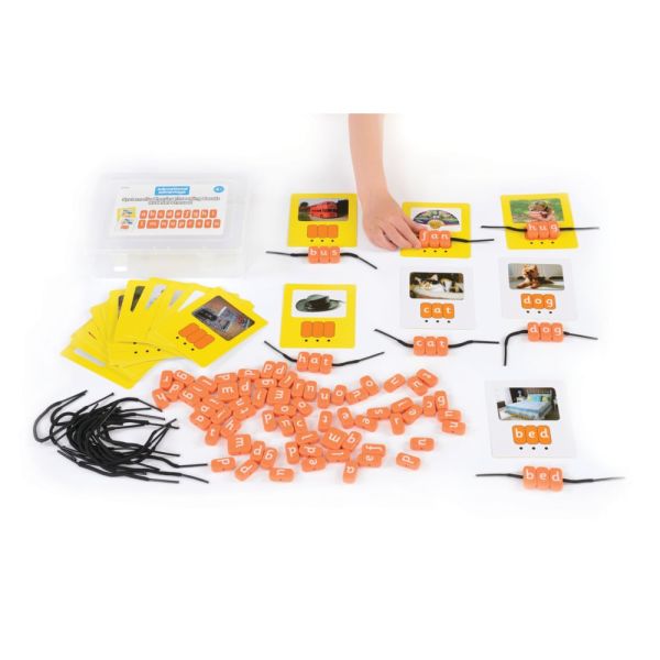Phonics Threading Beads - CVC Set Phase 2 offers a thoughtfully designed, durable resource for hands-on learning. Phonics Threading Beads - CVC Set Children will love to form CVC words with this set. The cards are initially laid out with the yellow side facing up to show the picture of the CVC word. Children pick a card and identify the missing CVC word. They then form the word using a lace and beads and lay the word on top of the card. All the cards are self-checking with the answers on the reverse of the card. All the letters and sounds in this set are from phase 2 and all the beads in this set are orange to match the phase 2 colour. Beads measure between 15-26mm wide & are all 29mm in height. The beads can be used independently to create pseudo words to check phonic recognition. Contains 90 beads 30 double-sided cards (12 x 10cm) and 30 x 17cm laces. Suitable for age 4 years +.