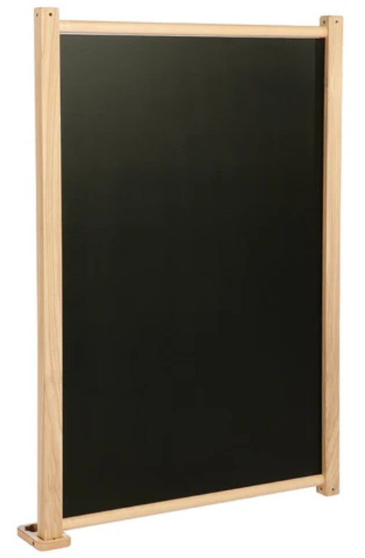 Chalk Board Panel combines durability with practical for daily use. Natural role play panels made from maple melamine with a solid beech timber frame and tough, child-safe, clear lacquer finish. These panels can also be connected to our furniture units. Lockable joining blocks allow panels to join to each other at seven different angles, enabling you to create any shape to meet your needs and make the most of the available space. A minimum of three panels are required for freestanding configurations. Manufactured in the UK. 5 year guarantee. W 780 x D 40 x H 1200 mm
