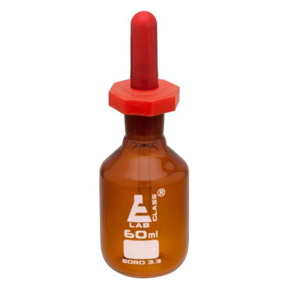 Bottle Pipette Dropping, Amber colour, 60ml.-EIS-CH0195B offers a thoughtfully designed, durable resource for hands-on learning. 60ml (2oz) Borosilicate 3.3 Glass Dropping Bottle Dropping bottle is equipped with an eye dropper pipette for clean dispensing of the stored contents. The amber color glass absorbs harmful UV waves, making it useful for light sensitive contents. Three piece pipette section, comprising of a glass eye dropper, high density polyethylene octagonal stopper and dust proof head with rubber teat. 60ml (2oz) capacity. Suitable for a variety of applications in the household, classroom or laboratory. Excellent for chemistry applications, transferring and mixing indicators, stains or other aqueous solutions. Perfect for storing, mixing, and dispensing essential oils and other homemade concoctions. Bottle (including top) measures 4.75" tall and 1.4" in diameter.