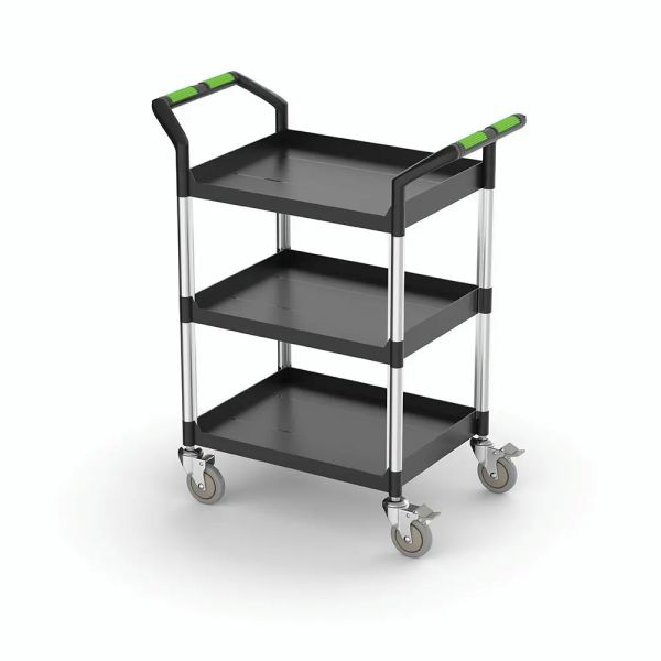 DuraLab Laboratory Trolley Small - 3 Shelves Each offers a thoughtfully designed, durable resource for hands-on learning. DuraLab Laboratory Trolleys are versatile for various uses, boasting lightweight construction and a secure load capacity of 250kg. Each trolley features precision bearing castors, including 2 with brakes, ensuring smooth mobility. Crafted from top-grade nylon fibre blended polymers, these units withstand rigorous working conditions. In line with our commitment to sustainability, we’ve transitioned to recycled Polypropylene (PP) material, minimising environmental impact. – 3x small shelves – Constructed from Recycled Polypropylene – Reinforced with Solid Steel Blocks for added durability – Includes 4x Rubber Castors (2x with locks) – Load capacity of 250kg Navigating a rough terrain?. See our DuraLab trolley pneumatic castors  which can be bought along with this trolley.