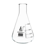 Flask Conical 1000ml, narrow neck, borosilicate glass-EIS-CH0424H offers a thoughtfully designed, durable resource for hands-on learning. High Quality Borosilicate glass 1000ml with 200ml graduations (1) Single Flask Narrow Neck Glass Erlenmeyer Narrow Neck Flask 1000ml, borosilicate ( Single flask ). Flask measures 8.5" tall and has a base diameter of 5". Inner neck diameter measures 35mm, and outer diameter measures 42mm. Autoclavable, with superior chemical durability. Low temperature gradient- can withstand high temperatures & thermal shocks. Eisco Labs Borosilicate glass has the following heat tolerances: Strain Point -515°C | Annealing Point 565°C | Softening Point 820°C. Eisco Labs proudly manufactures its own products using state-of-the-art equipment, and following the highest standards of quality control. Each product is carefully designed by a team of laboratory professionals and experienced engineers with quality and durability in mind. They are manufactured with only the highest grade, raw materials and according to international quality standards to ensure that they can withstand use in even the toughest laboratory environments.