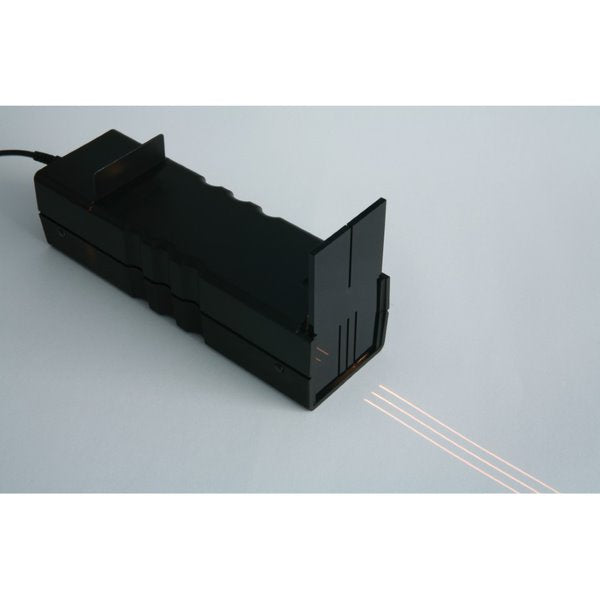 Ships with removable slit plate and lens to provide one or three parallel rays.