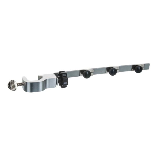 Pendulum Clamp-EIS-PH0308 offers a thoughtfully designed, durable resource for hands-on learning. EISCO Labs Pendulum Clamp This sturdy pendulum clamp is constructed of an aluminum support bar with three screw clamps, attached to a die cast head clamp for use on support rods to hang weights and pendulums. Can attach to support rods up to 16mm in diameter. Three screw clamps can securely and individually be used to attach weights with strings. This pendulum clamp makes it easy to simultaneously demonstrate or test the properties of simple harmonic motion in physics labs or classrooms. Overall length 11.5 x 1.5 x 1.25 inches.