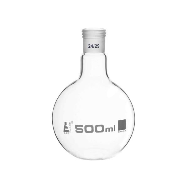 Flask Boiling -Screw Thread, Flat Bottom 500 ml Socket 24/29-EIS-CH01004I offers a thoughtfully designed, durable resource for hands-on learning. Made of high quality, heavy duty Borosilicate glass. 500ml capacity Interchangeable, screw thread joint. Socket size 24/29. Flask measures 6" tall, 2" diameter base, 4" width at the widest point. Perfect for any home, school, or professional science laboratory. 500ml capacity boiling flask made of high quality, heavy duty borosilicate glass. Interchangeable, screw thread joint. Socket size 24/29. Flask measures 6" tall, 2" diameter base, 4" width at the widest point. Autoclavable, with superior chemical durability. Low temperature gradient- can withstand high temperatures & thermal shocks. Eisco Labs Borosilicate glass has the following heat tolerances: Strain Point -515°C | Annealing Point 565°C | Softening Point 820°C Eisco Labs proudly manufactures its own products using state-of-the-art equipment, and following the highest standards of quality control. Each product is carefully designed by a team of laboratory professionals and experienced engineers with quality and durability in mind. They are manufactured with only the highest grade, raw materials and according to international quality standards to ensure that they can withstand use in even the toughest laboratory environments.