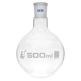 Flask Boiling with joint 500ml, socket size 24/29, round bottom, interchangeable joint, single neck, borosilicate glass-EIS-CH0404I offers a thoughtfully designed, durable resource for hands-on learning. Made of high quality, heavy duty Borosilicate glass 500ml capacity Single joint with 24/29 size socket Stands 6.5" tall, neck measures 1.3" wide, and bottom diameter measure 4.5" Perfect for any science or home laboratory 500ml capacity boiling flask made of high quality, heavy duty borosilicate glass. Single, interchangable joint with 24/29 size socket. No stopper included. Flask measures 6.5" tall, and has a neck measuring 1.3" wide, and a bottom diameter measuring 4.5". Eisco Labs Borosilicate glass has the following heat tolerances: Strain Point -515°C | Annealing Point 565°C | Softening Point 820°C.