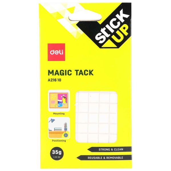 Magic Tack 35g Reusable offers a thoughtfully designed, durable resource for hands-on learning. Multi. purpose adhesive putty. stick. seal. position. hold a lot of items in home. office and school Can be used as modeling to sculpt and stick Thumb press easy stick putty Hold items firmly for over 24 hours Non. toxic. White.